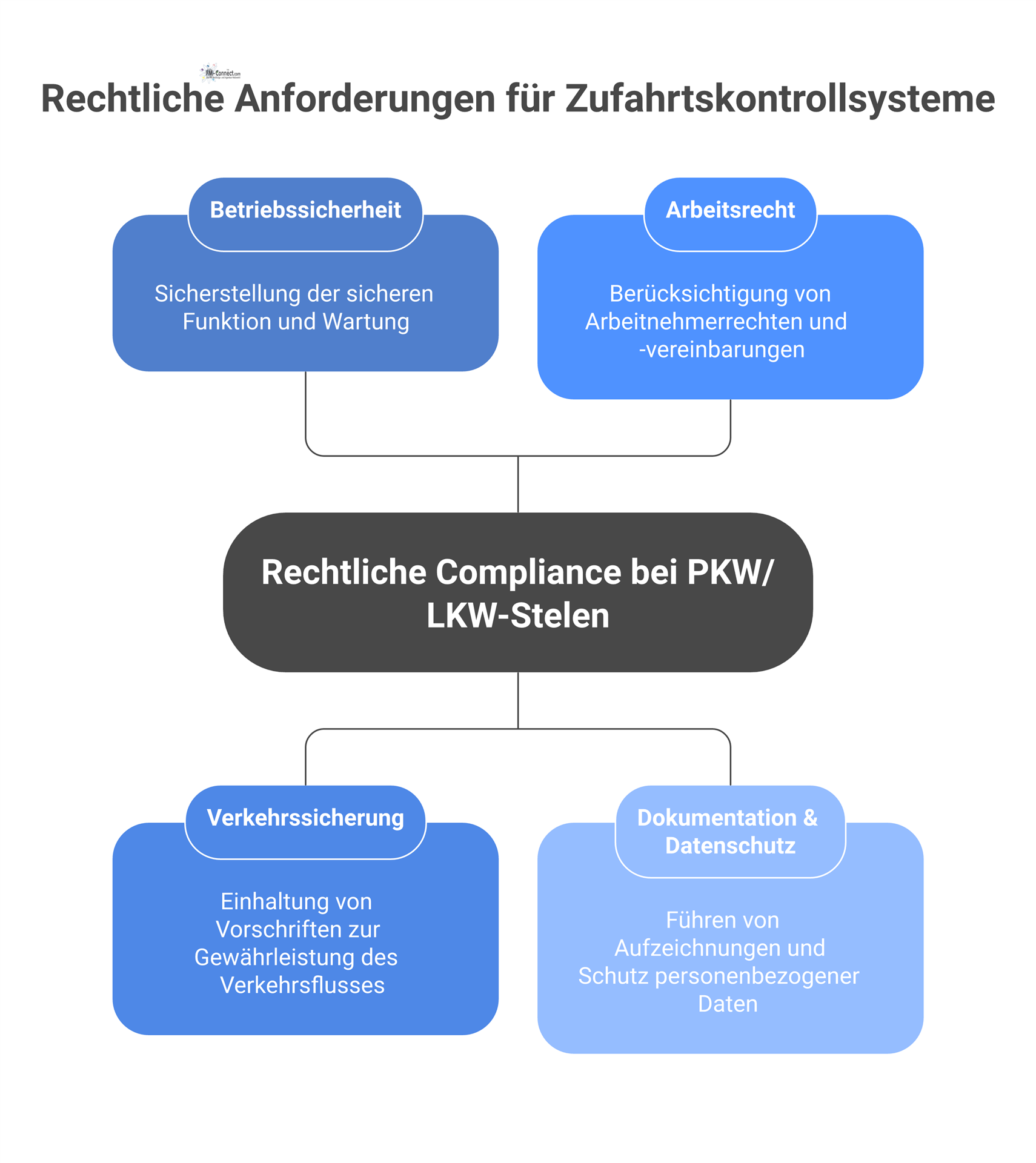 Rechtlich verlangt wird oft eine Dokumentation der Maßnahmen: Das betrifft sowohl Datenschutzdokumente (Verfahrensverzeichnis, DSFA-Bericht) als auch technische Prüfprotokolle (von der Schrankenwartung) und Schulungsnachweise (Unterweisungen der Mitarbeiter, Aushang der Verhaltensregeln). Im Haftungsfall (etwa ein Unfall an der Schranke oder ein Datenskandal) kann das Unternehmen nur entlastet dastehen, wenn es diese Sorgfaltspflichten erfüllt hat.